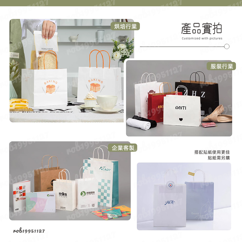 - 烘焙甜點:麵包店、蛋糕店、手工甜點工作室,用於糕點、餅乾、節日禮盒包裝,食品級安全材質,可印品牌資訊與產品介紹