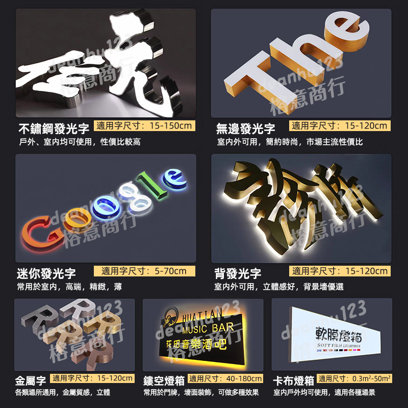 台灣訂製發光字迷你字招牌  戶外防水防曬耐用 UV 噴繪 LED 節能燈珠 鋁合金邊框便攜組裝勻光不刺眼商業廣告燈箱